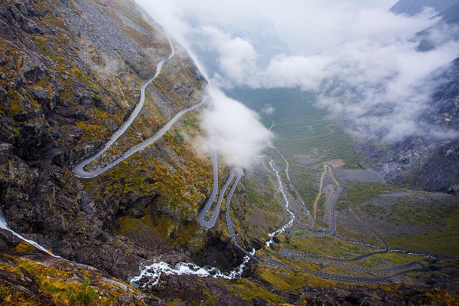 Jedna z najbardziej znanych tras widokowych w Norwegii, Trollstigen to prawdziwe wyzwanie i przygoda. Dziewięć ostrych serpentyn wspina się po stromym zboczu doliny Isterdalen, a na szczycie czeka punkt widokowy z platformą zawieszoną nad przepaścią.